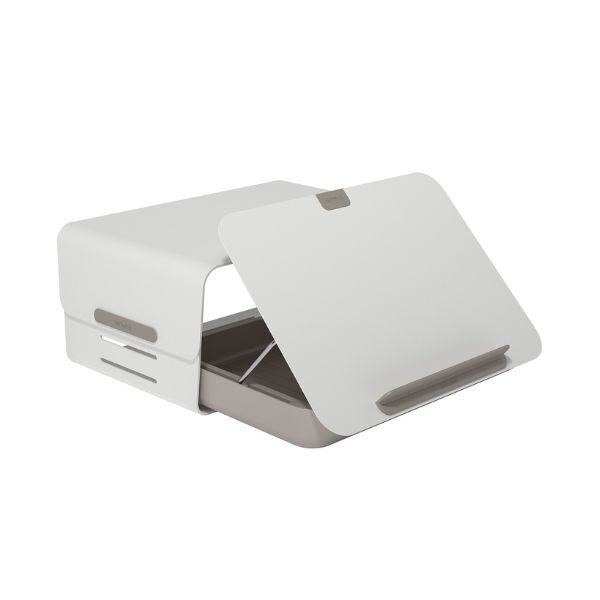 Met de Addit Bento ergonomische bureauset 220 is het makkelijk om jouw bureau netjes te houden én tegelijk ergonomisch te werken. De bureauset is een soort drie-in-één: de opbergdoos fungeert open als documenthouder. Wanneer deze niet wordt gebruikt en gesloten is, past hij makkelijk in de monitorverhoger. Zo ziet je werkplek er altijd strak en georganiseerd uit.