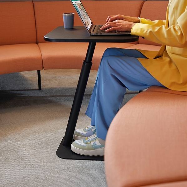 De laptoptafel sluit aan bij het principe van dynamisch werken, waarbij medewerkers afwisselend kunnen werken op verschillende plekken in de organisatie.