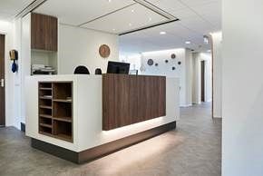 “We zijn erg tevreden met de nieuwe opzet van de ontvangstruimte en onze baliewerkplek. De werkbladen zijn aangepast en verbreed, waardoor we meer werkruimte hebben gekregen. Onze werkplek is ergonomisch instelbaar, wat heel fijn is. Ons bureau en de stoel is persoonlijk ingesteld en we hebben goede verlichting boven de balie; dit werkt een stuk prettiger. De ontvangstruimte is veel lichter door het kleurgebruik. Veel gehoorde reactie: ‘het oogt hier veel groter, wat een fijne ontvangstruimte!’"