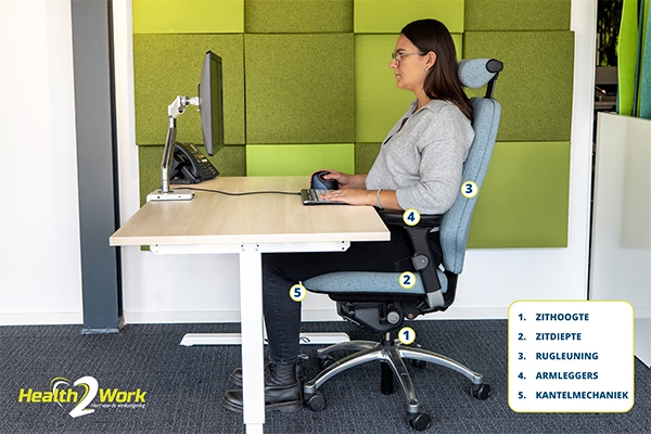Als je de volgende stappen volgt, heb je uiteindelijk een bureaustoel die perfect is ingesteld op jouw lichaam. Wij nemen je mee door de checklist.