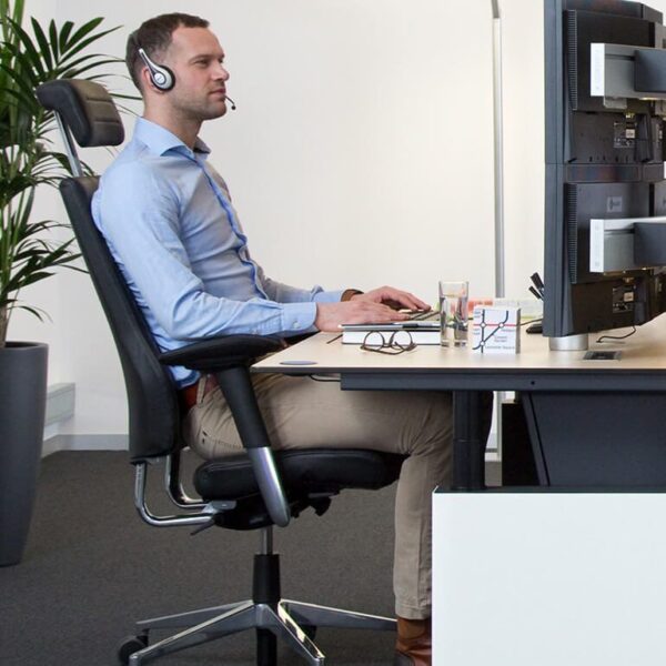 Een echte ergonomische bureaustoel, zoals de BMA Axia Vision, biedt de juiste ondersteuning en is gecertificeerd voor continu gebruik.