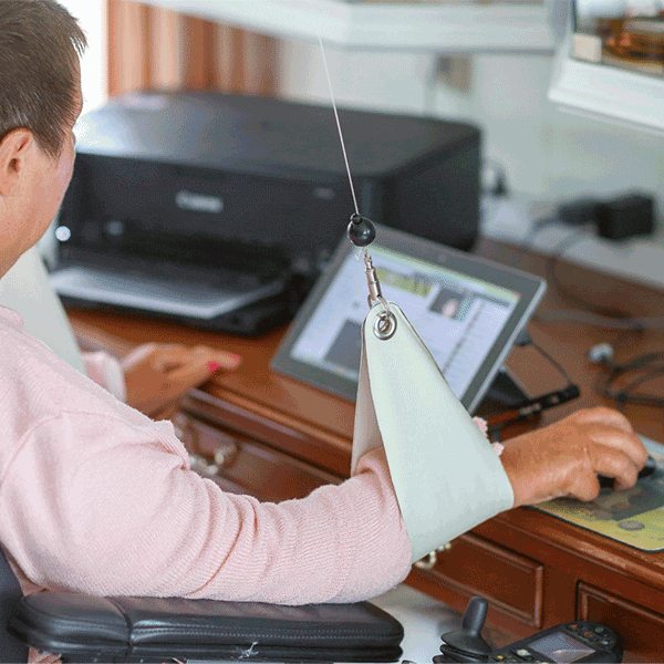 De Balancer is een armondersteuning die het gewicht van jouw arm vanaf boven draagt. Dit zorgt ervoor dat je veel bewegingsvrijheid hebt met name boven een tafel of werkblad.