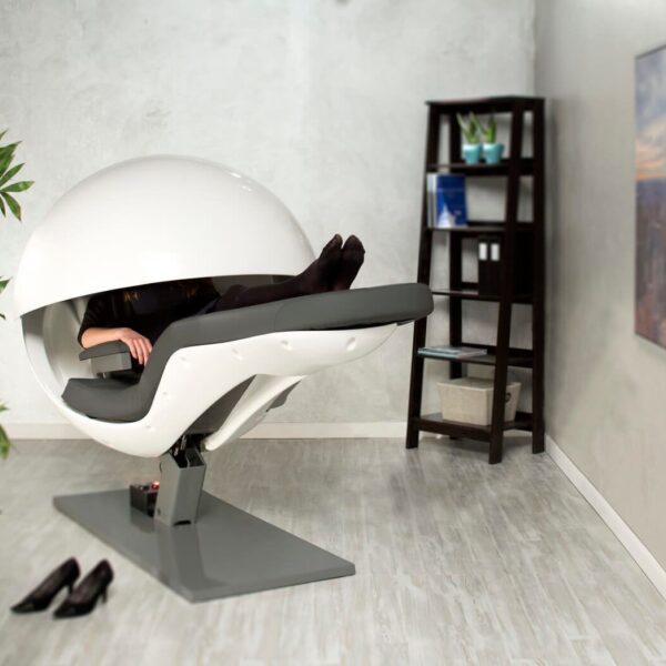 Ben je toe aan de powernap? Neem plaats en ontspan! De EnergyPod kantelt achterover zodat je je gewichtsloos voelt. Door de ergonomische vorm van de zitting zijn je knieën licht gebogen en ontspannen de spieren in je onderrug. Je kunt de kap van de EnergyPod handmatig naar de gewenste positie draaien zodat je je volledig kunt afzonderen. Met één druk op de knop start je het voorgeprogrammeerde slaapprogramma van 20 minuten. Een kortere of langere tijdsduur is ook mogelijk. Je hoort rustgevende muziek zodat je volledig kunt ontspannen. Je kunt de muziek beluisteren via de ingebouwde Bose speakers of door een koptelefoon op te zetten. Is het weer tijd om wakker te worden, dan word je rustig gewekt door licht, muziek en trillingen van de slaapstoel.