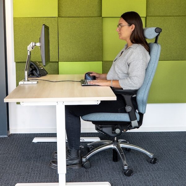 Een elektrisch zit-sta bureau, zoals de Ergodesk E2T, maakt het voor gebruikers eenvoudig om af te wisselen tussen zitten en staan. Dit helpt rug- en nekklachten te voorkomen, verhoogt de productiviteit en ondersteunt een gezonde werkhouding.