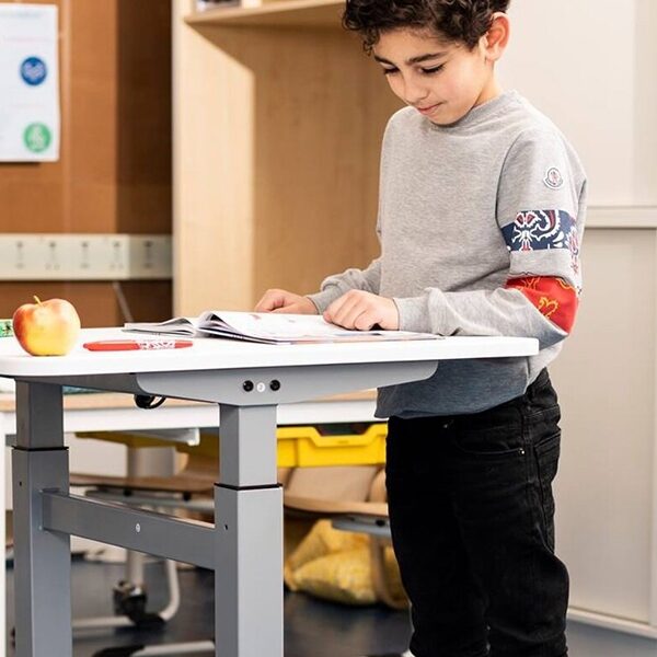 | Staan en zitten is eenvoudig af te wisselen met de Ergodesk Elementary zit-sta tafel. Creëer rust in de klas! |