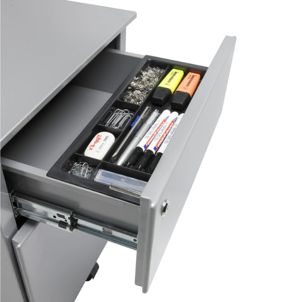 De rolkast is door de wieltjes heel makkelijk te verplaatsen. Je kunt hem naast je bureau plaatsen, bij gebrek aan ruimte onder de tafel en wanneer hij in de weg staat, makkelijk wegrollen. Flexibel in gebruik waar jij het nodig hebt. Bovendien zijn de lades voorzien van een soepel lopend mechanisme voor gemakkelijke toegang.