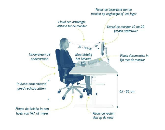 Een goed ingerichte werkplek heeft een enorm positief effect op de manier waarop jij je werk uitvoert. Niet alleen zorgt een goede houding ervoor dat je klachtenvrij kunt werken. Ook je productiviteit, creativiteit en vitaliteit krijgen een boost door het aannemen van een goede houding. Vaak ben je je niet bewust van bepaalde houdingen die jouw lichaam negatief beïnvloeden. Met een werkplekanalyse laten onze ergonomisch adviseurs jou zien hoe je houding is. Ook tonen ze je hoe je met de juist ingestelde meubels en het juiste gebruik van hulpmiddelen een enorme verbeteringsslag kunt maken in je werkhouding.
