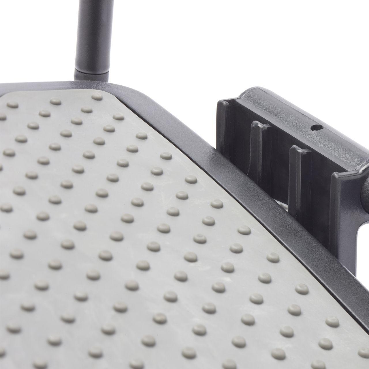 Het ontwerp is compact en stevig, geschikt voor intensief gebruik. Het kantelmechanisme stelt je in staat om het voetplateau te kantelen, waardoor de spieren in je onderbenen licht geactiveerd blijven. De bovenzijde is voorzien van een zachte beensteun, zodat je ook je onderbenen kunt laten rusten wanneer je even anders wilt zitten. Dankzij de antislip onderzijde staat de ErgoStretch stabiel, ook op gladde vloeren.