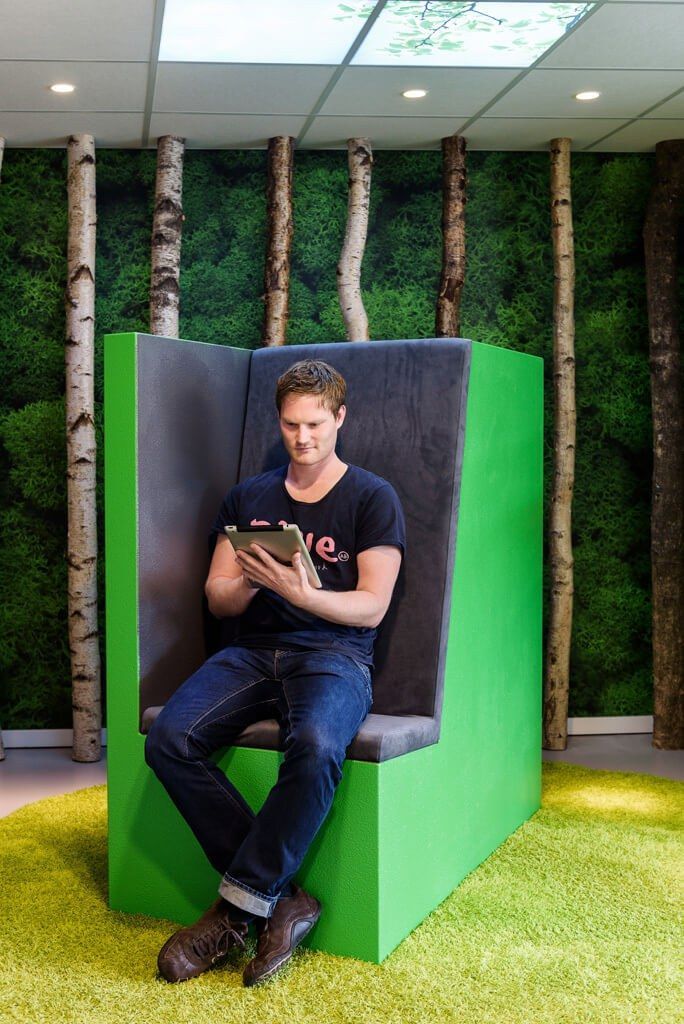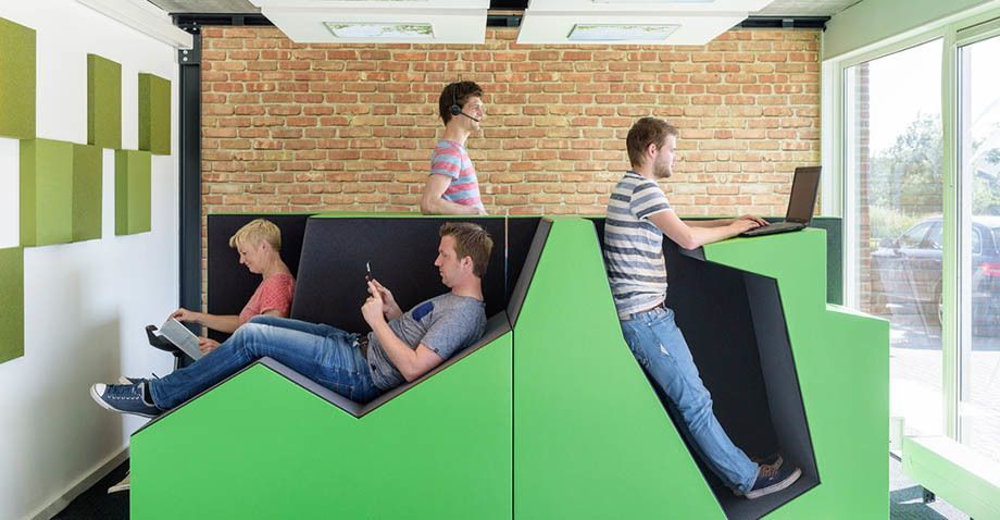 De Health2Work Cube bestaat uit 8 losse elementen. Deze elementen vormen met elkaar een vierkant, de Cube. De elementen kun je ook heel goed los van elkaar in een ruimte plaatsen. Kijk welk element goed bij je werk en omgeving past. De kleine tafel, de Scrum Cube, gebruik je voor een dagopening of een brainstormsessie. Wil je het werk onderbreken met een korte powernap? Dit doe je in de Lounge Cube.