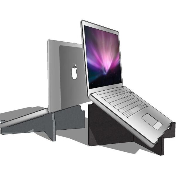 Deze laptophouder zorgt ervoor dat het laptopscherm eenvoudig hoger geplaatst kan worden. Het product kenmerkt zich door eenvoud en circulariteit.