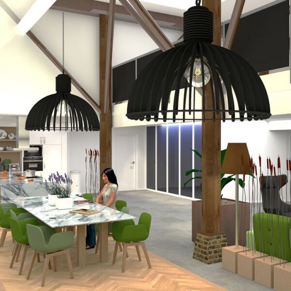 De industriële akoestische lamp is gebaseerd op oude retro fabriekslampen. Oud wordt weer nieuw! De retro fabriekslamp is vertaald naar de industriële akoestische lamp, uitgevoerd in een akoestisch en duurzame variant.