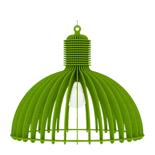 De industriële akoestische lamp is uniek in design en uitvoering. De lamp is gemaakt van 100% gerecycled materiaal. Vanwege de structuur van de vezels van de gerecyclede petflessen is het materiaal zeer sterk en is er geen toevoeging nodig, dit maakt het product 100% recyclebaar.