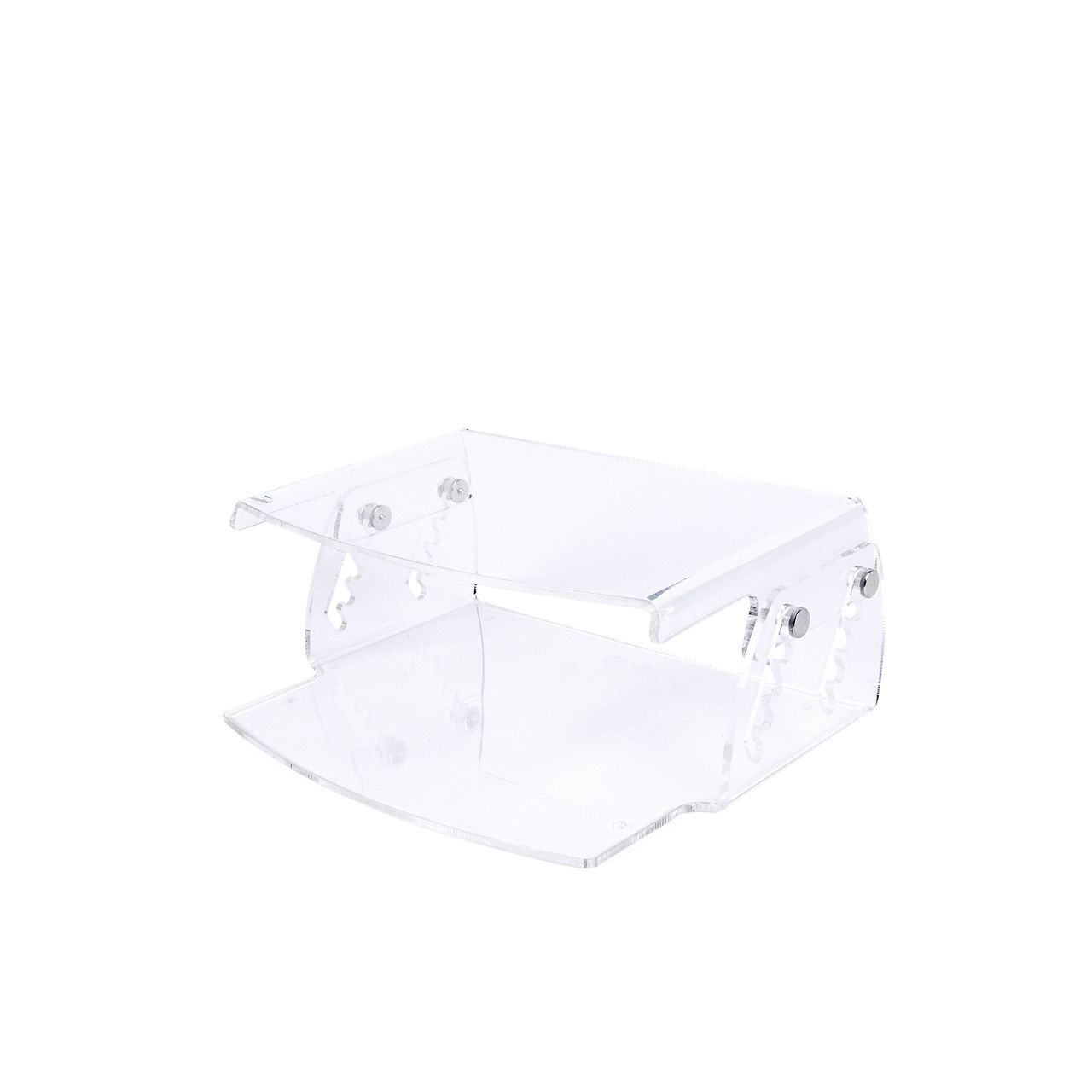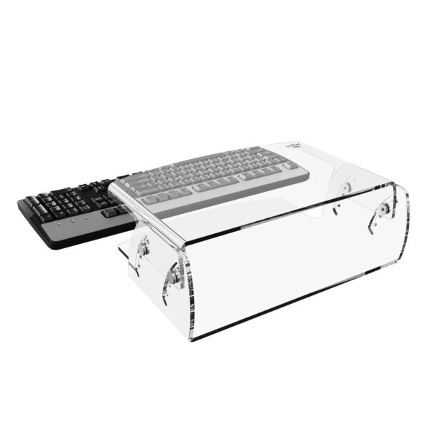 De standaard is eenvoudig in hoogte aan te passen van 7 cm tot 13 cm (70‑130 mm) dankzij vijf vaste standen. Het transparante acryl maakt het visueel subtiel en past in vrijwel elke kantoor‑ of thuiswerkplek. Dankzij de ruimte onder de standaard kun je je toetsenbord of laptop eenvoudig wegschuiven wanneer je die even niet gebruikt. Ideaal voor een opgeruimd bureau.