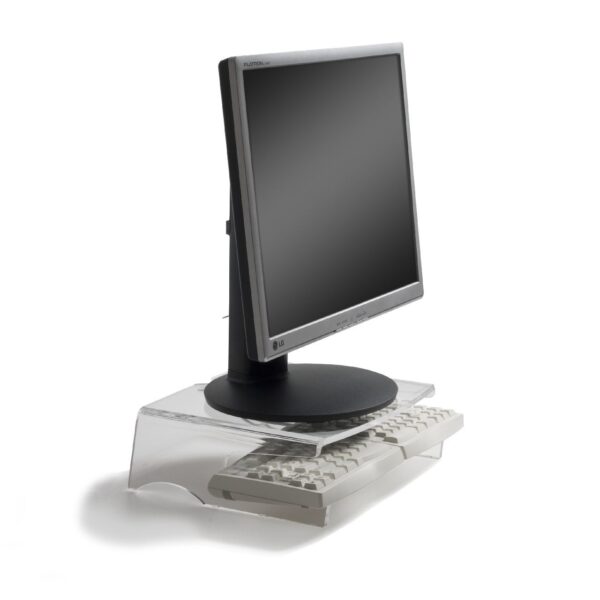 De monitorsteun heeft een vaste hoogte van 10 cm. Onder de monitorsteun is opbergruimte voor laptop of (compact) toetsenbord. De Q-Riser 100 monitorsteun is geschikt voor flatscreens en CRT monitoren tot en met 17".