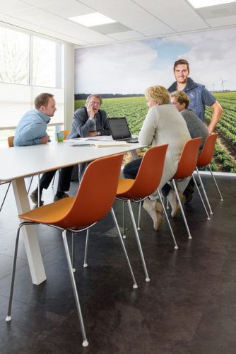 Ook in dit project hebben wij weer de slinger verstelbare en zit/sta bureaus ingezet, evenals de bureaustoelen in de huisstijl van AB Vakwerk.