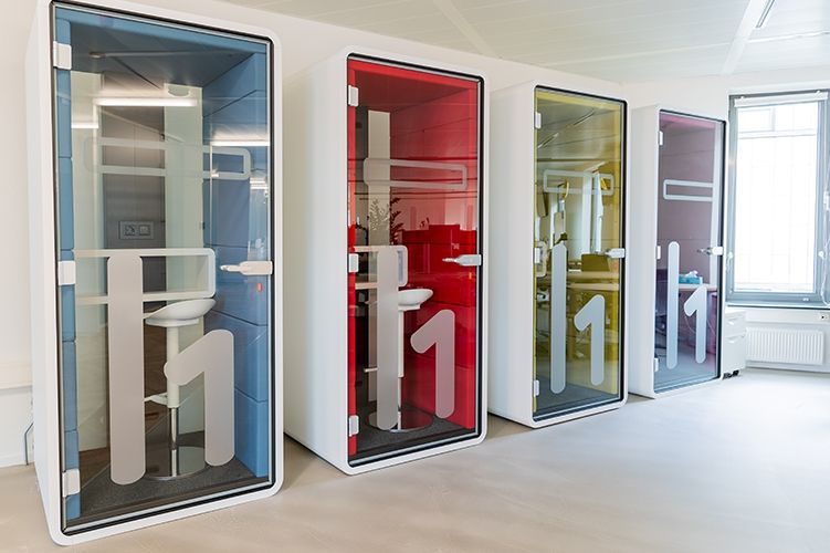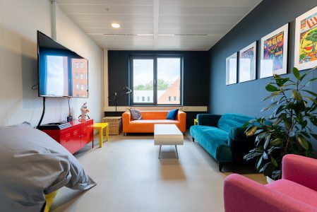 Ook esthetisch is er rekening gehouden om de cultuur van het bedrijf goed te uitten: ‘Omdat een kantoor snel klinisch kan ogen, hebben we er bewust voor gekozen om veel verschillende vormen en kleuren toe te passen. Zelfs de geluiddichte belcellen hebben aan de binnenzijde niet allemaal dezelfde kleur’.