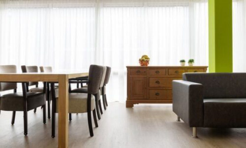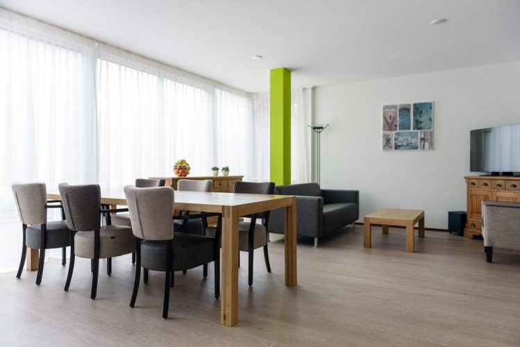 Idesta heeft ons gevraagd mee te denken over de inrichting van de gemeenschappelijke ontmoetingsruimte. De inrichting bestaat uit één of meerdere eetkamertafels met daarbij passende eetkamerstoelen. De eetkamerstoelen zijn bekleed met incontinentie en bloed bestendige stof en zijn uiteraard brandvertragend.