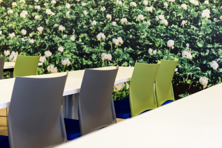 Doordat wij stevige, verrijdbare klaptafels inzetten, kan de opstelling snel veranderd worden. De tafels kunnen genest worden en de stoelen komen op verrijdbare karren, zodat er weinig opslagruimte nodig is.