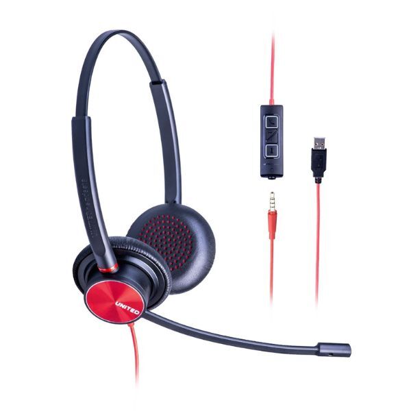 De koptelefoon is uitgerust met zowel een USB-A als een 3,5 mm jack aansluiting. Zo is de United Headsets Max 40 compatibel voor veel verschillende laptops en tablets. Het ontwerp is licht, heeft kunstlederen oorkussens en is makkelijk aan te sluiten. Met de handige knoppen kun je het volume, mute en het beantwoorden en beëindigen van gesprekken bedienen.