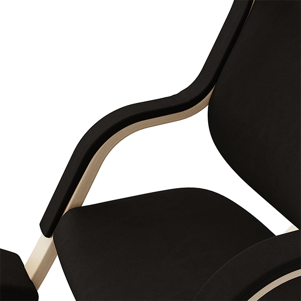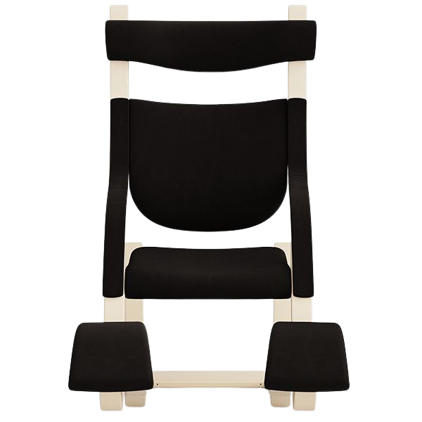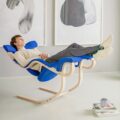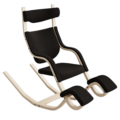 Als je naar voren leunt, steunt de stoel op de kniesteunen en zou je aan een bureau of tafel kunnen werken. In de neutrale stand, kan je ontspannen lezen. In één stand verder naar achteren, zou je bijv. prima met een koptelefoon op je favoriete muziek kunnen luisteren. Om een liggende positie aan te nemen, duw je voorzichtig van de grond af en leun je helemaal achterover tot je benen boven je hart uitsteken. In deze positie schommelt de stoel zachtjes op het ritme van je ademhaling en kun je je ontspannen in gewichtloosheid. De ruimte tussen de hoofdsteun en de gekantelde rugleuning biedt bewegingsvrijheid voor armen en schouders. De hoofdsteun zelf kan naar wens omhoog of omlaag worden bewogen.